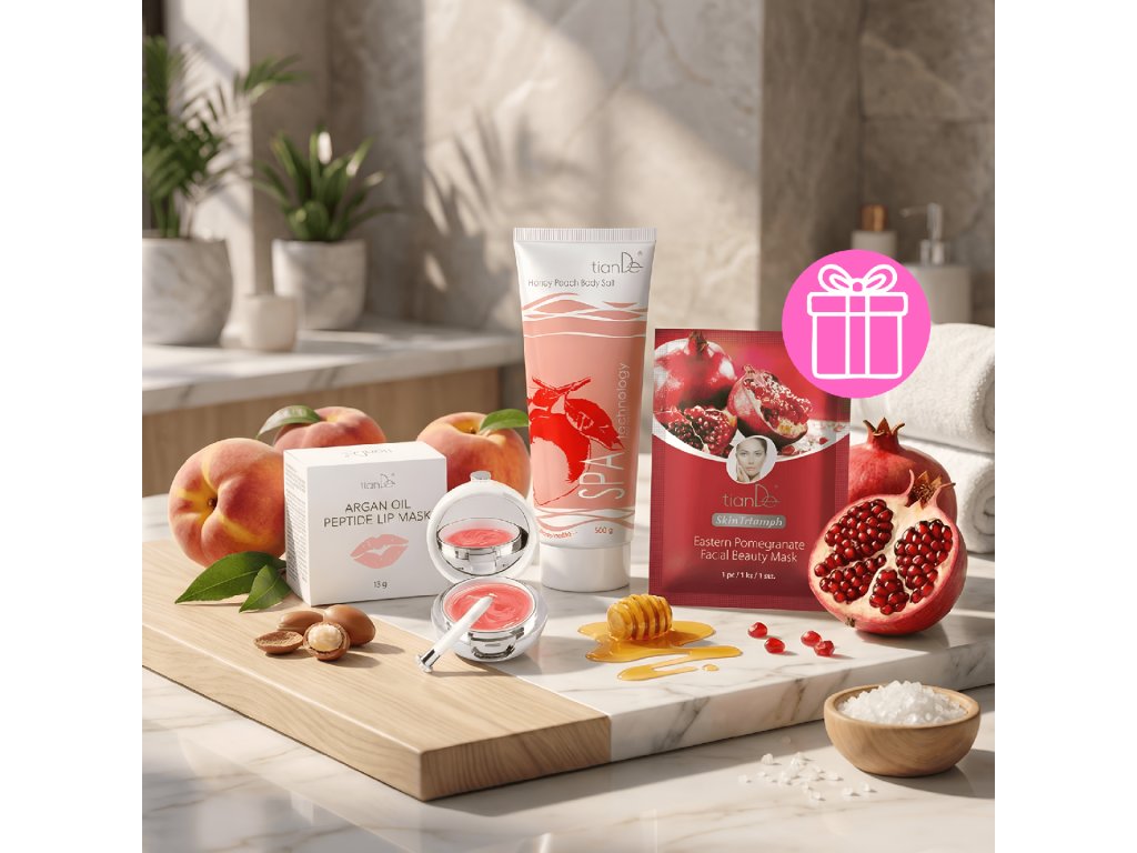 Valentýn není jen o drincích, ale především o tom, cítit se ve své kůži neodolatelně. Náš speciální balíček Šťavnaté pokušení jsme sestavili tak, aby probudil vaši ženskost a dodal vám sebevědomí. Kombinace sladké broskve, exotického granátového jablka a výživného arganu je přesně tím koktejlem krásy, který před romantickým večerem potřebujete.
