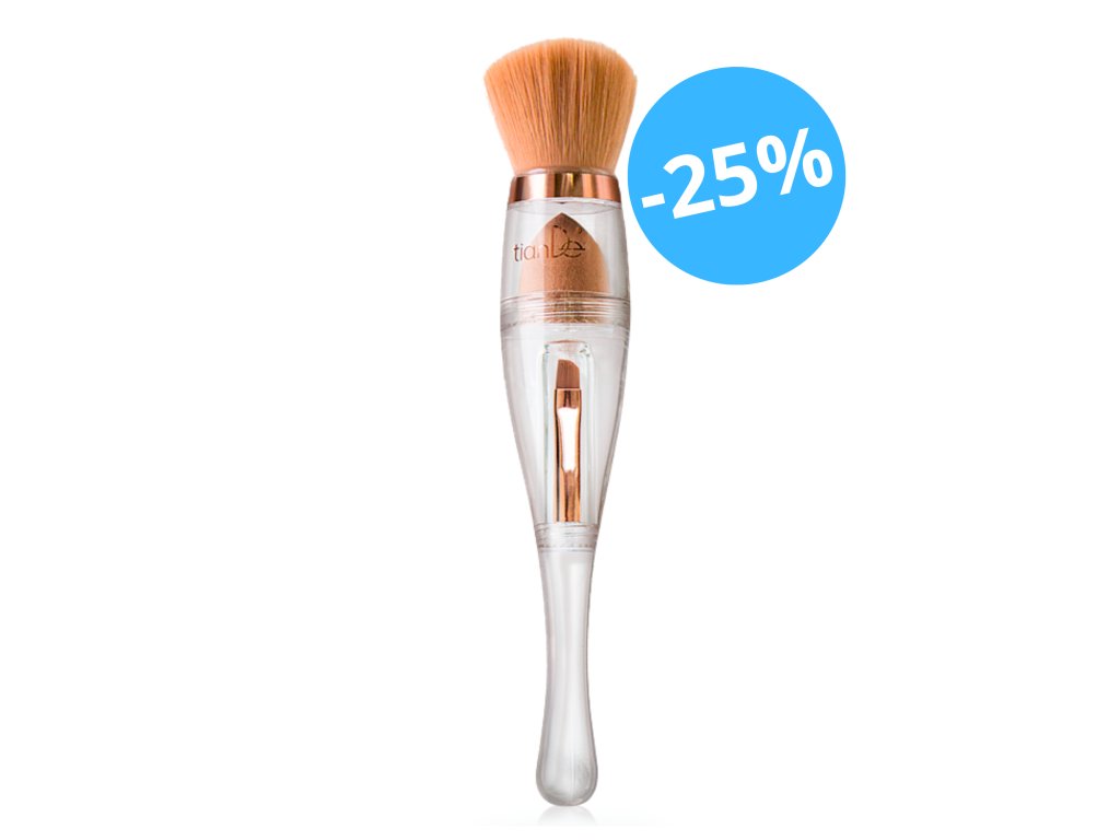 Houbičku na tónovací základ, velký štětec na pudr, malý zase na rtěnku a obočí - pro ideální make-up potřebujete desítku různě velkých štětců, nebo-jediný štětec "3v1" od TianDe.