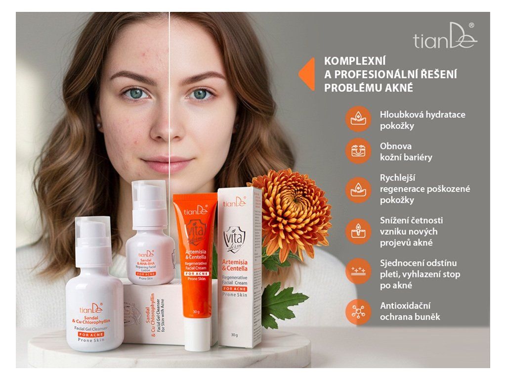 ✔ Sjednocená a hladká pleť s méně znatelnými stopami po akné.