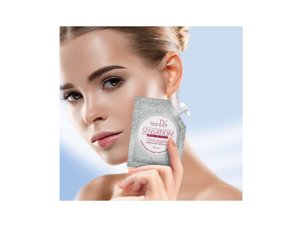 Krém na obličej působí jako ultralifting, okamžitě vyrovnává jemné vrásky. Pleť je vizuálně vyrovnanější, vrásky se zjemňují. "Sensation" je prostředek "2 v 1". Krém funguje perfektně jako denní korekce tváře s vypínacím liftingový efektem a je také vynikajícím podkladem pod make-up. Ve složení krému je inovativní peptidový komplex MATRIXYL® 3000, který ve spolupráci s ostatními účinnými látkami spouští proces regenerace a restrukturalizace pleti.