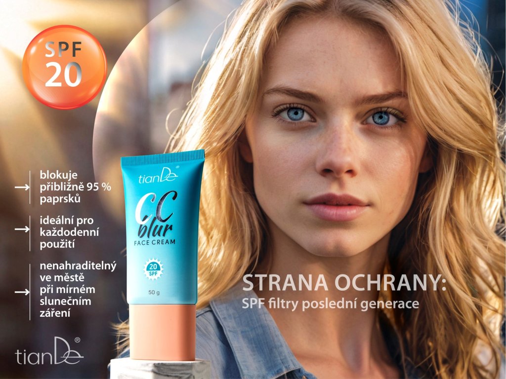 CC pleťový krém s blur efektem SPF 20 funguje v podstatě jako filtr v reálném životě – maskuje nerovnosti, vyhlazuje viditelnost pórů, jemných vrásek a dalších nedokonalostí, dodává pleti svěžest a zářivost.