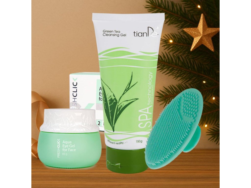 - Čisticí gel „Zelený čaj“ (150 g) – čistí póry, reguluje maz, zklidňuje; matný, ale hydratovaný finiš.