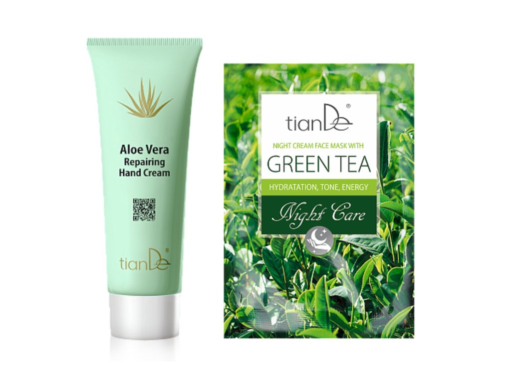 DÁREK Krémová maska Zelený čaj 18 g + Regenerační krém na ruce s aloe vera 80 ml Body: 0,0