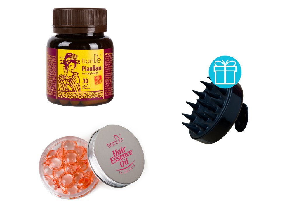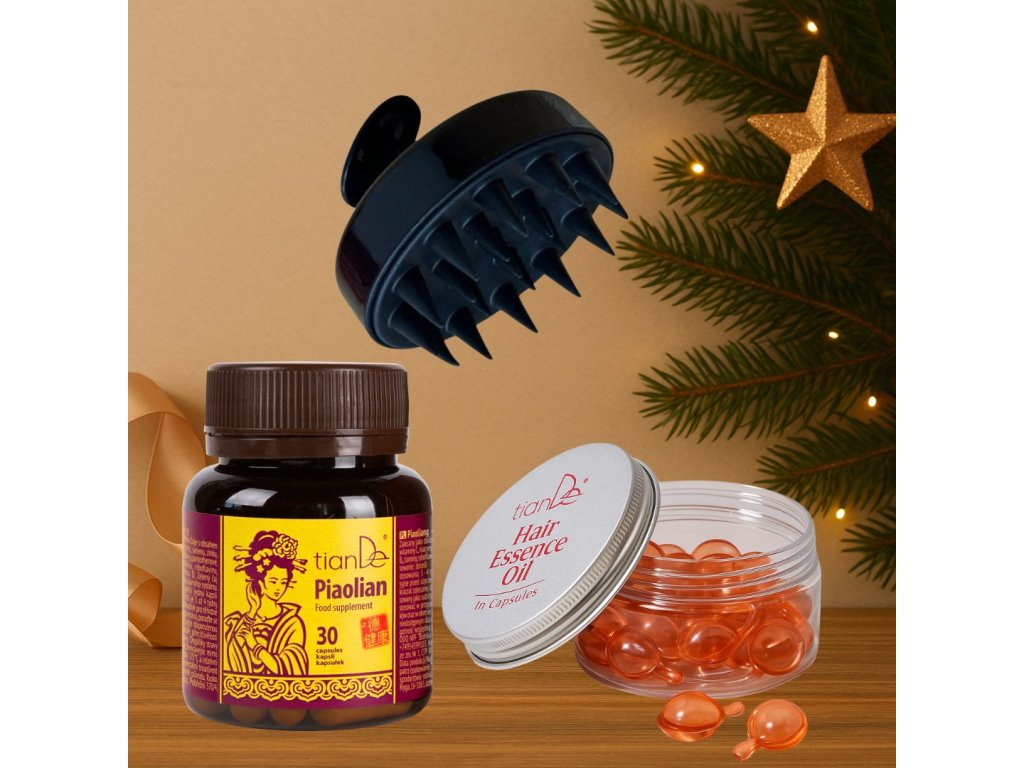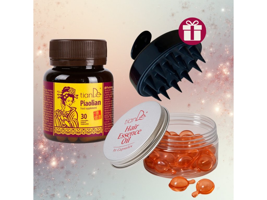 Tento elegantní vánoční set potěší každou ženu, která chce své vlasy, pleť i nehty vyživit do hloubky. Spojuje sílu vnitřní výživy v podobě funkčního komplexu Pjaoljan a intenzivní vlasové péče díky olejové esenci v kapslích. Dohromady tvoří harmonickou dvojici, která zkrášluje, regeneruje a probouzí přirozený lesk.