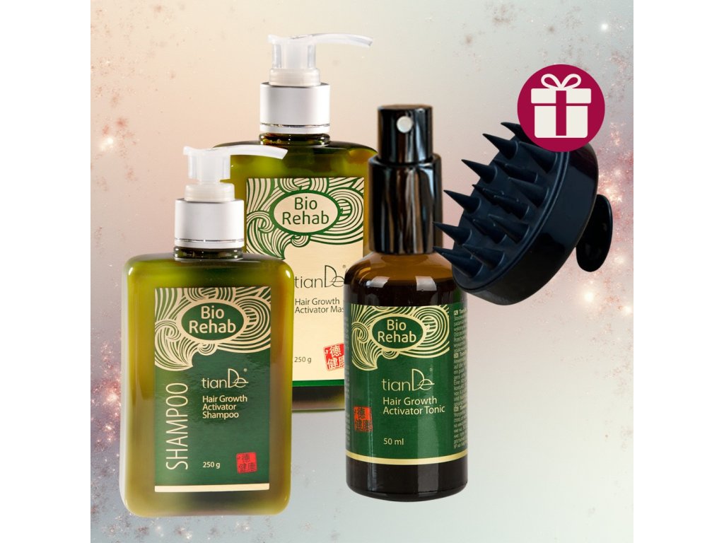 Tento dárkový set z oblíbené řady Bio Rehab je snem všech, kdo touží po silnějších, hustších a rychleji rostoucích vlasech. Kombinace tří přírodních produktů působí v dokonalé harmonii – aktivuje vlasové cibulky, podporuje růst nových vlasů, omezuje jejich vypadávání a zlepšuje celkovou vitalitu vlasové pokožky.