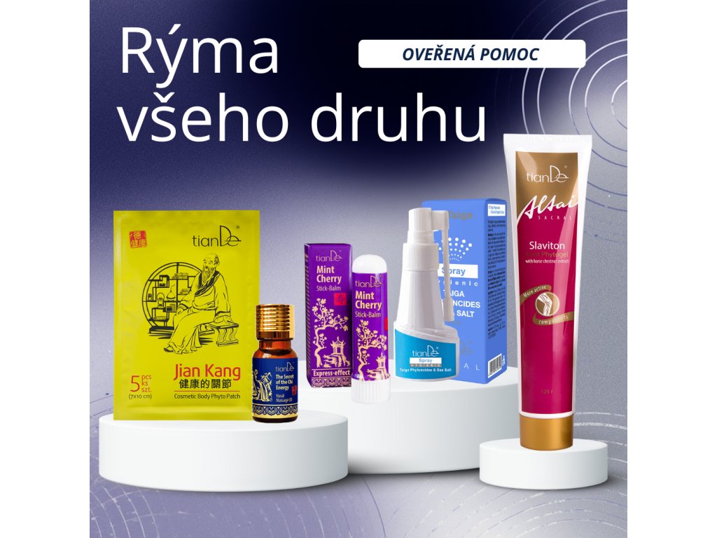 Při prvních příznacích vyčistěte nos sprejem s mořskou silou. Na křídla nosu vmasírujte olej Čchi. Pro hluboké uvolnění dutin nastříhejte náplast Jian Kang na malé čtverečky a nalepte na čelo a tváře (mimo oční okolí). Bolí vás hlava nebo se vám těžce dýchá, rozetřete Slaviton na spánky a hrudník. Přes den inhalujte aroma-tyčinku.